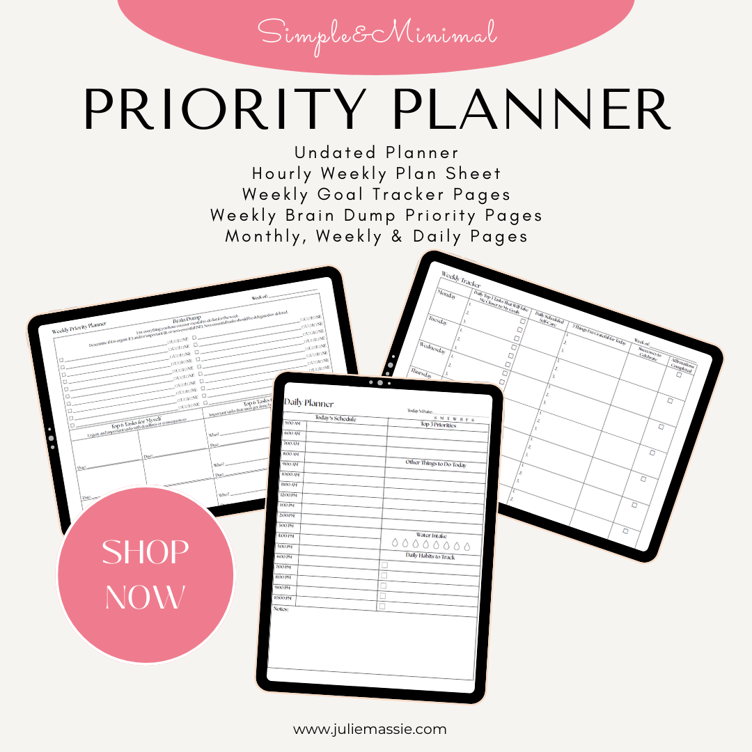 Are you a busy mom juggling endless responsibilities? Between work, family, and personal goals, it can feel like there’s never enough time in the day. You need a solution that not only helps you stay organized but also keeps you focused on what truly matters. That’s where the Priority Planner comes in. The Priority Planner is specifically designed for busy moms like you. It’s more than just a planner—it’s your personal roadmap to a more organized, balanced, and fulfilling life. With its undated, flexible layout, the Priority Planner adapts to your unique schedule and goals, helping you prioritize your tasks, track your progress, and make time for what’s most important.